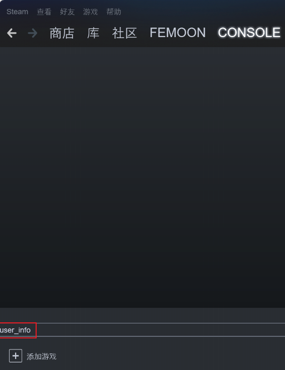 打开 Steam 控制台输入 **user_info**** **然后回车
